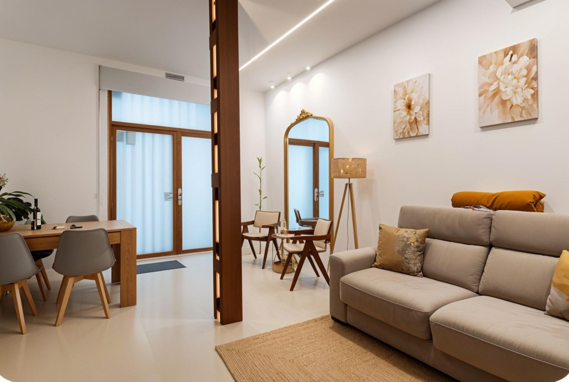 La cocina americana, integrada en el salón, ha sido diseñada con estilo actual y equipada con todos los elementos necesarios, ofreciendo un espacio cómodo y práctico para el día a día. El salón destaca por su ambiente cálido y acogedor, aprovechando al máximo los metros disponibles.