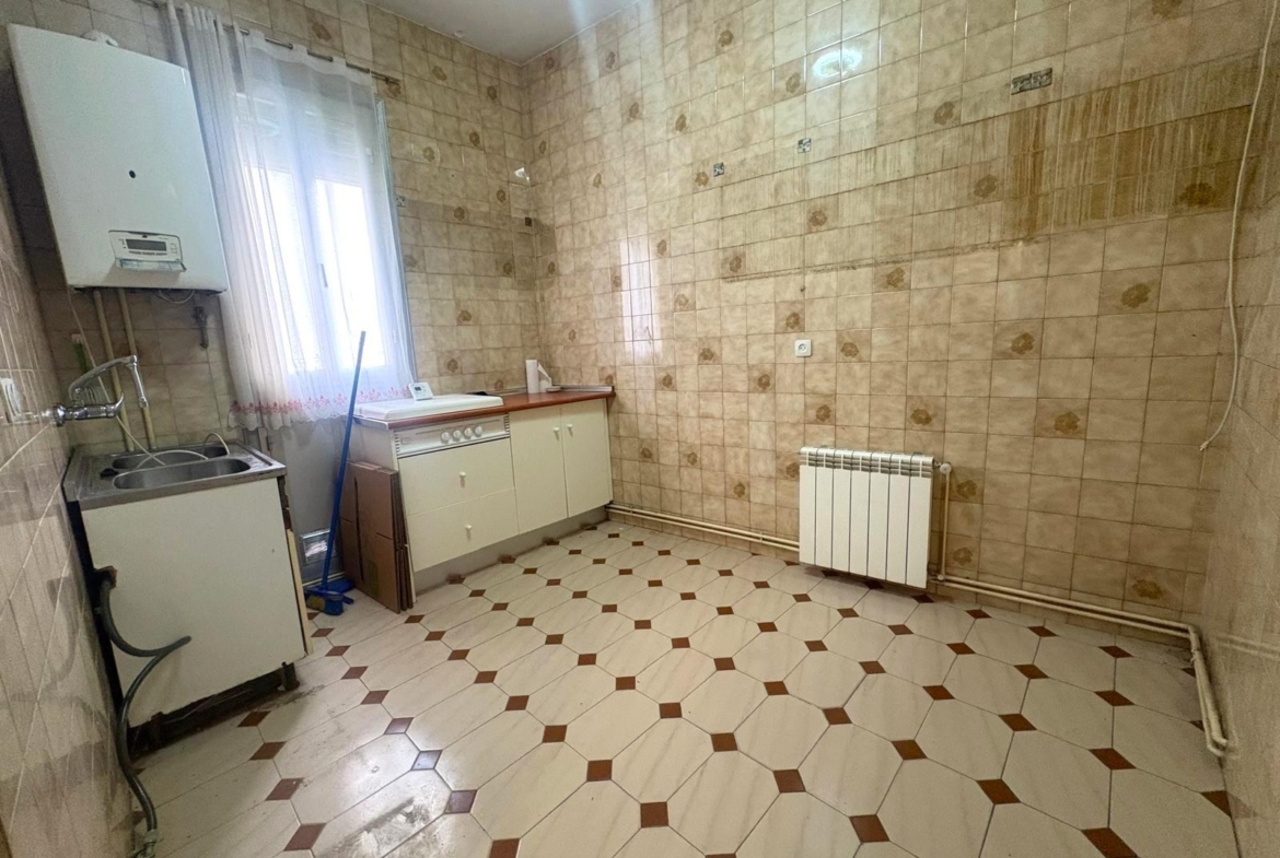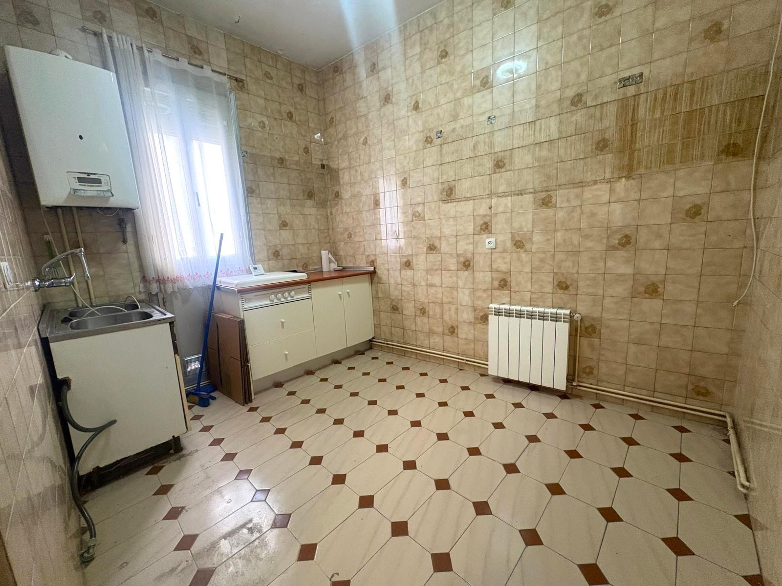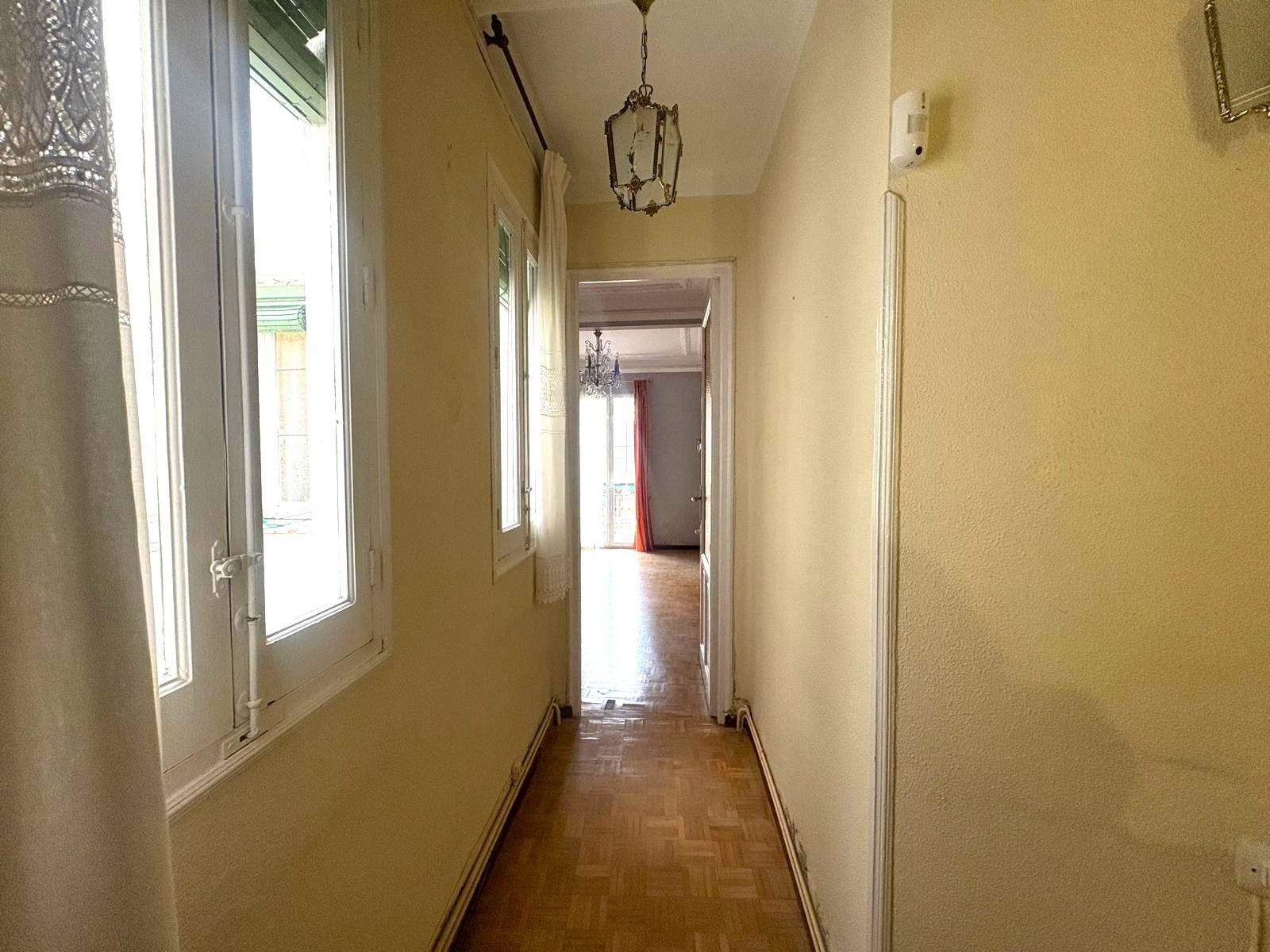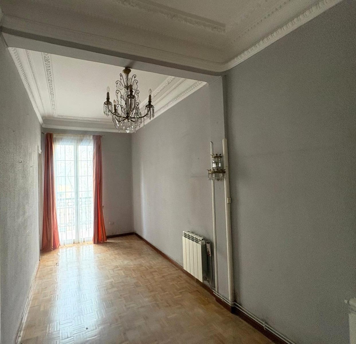 Su distribución actual ofrece un amplio salón con balcón, tres dormitorios (uno con acceso al segundo balcón) y una cocina independiente y espaciosa con ventana.