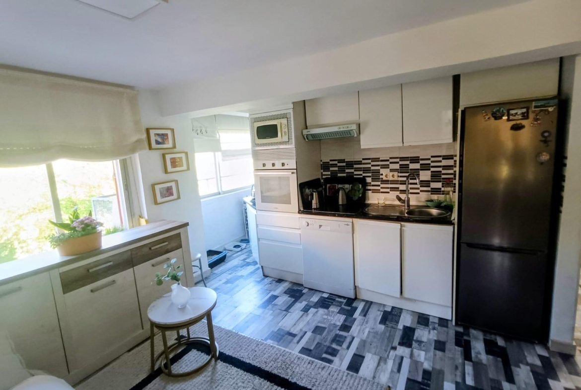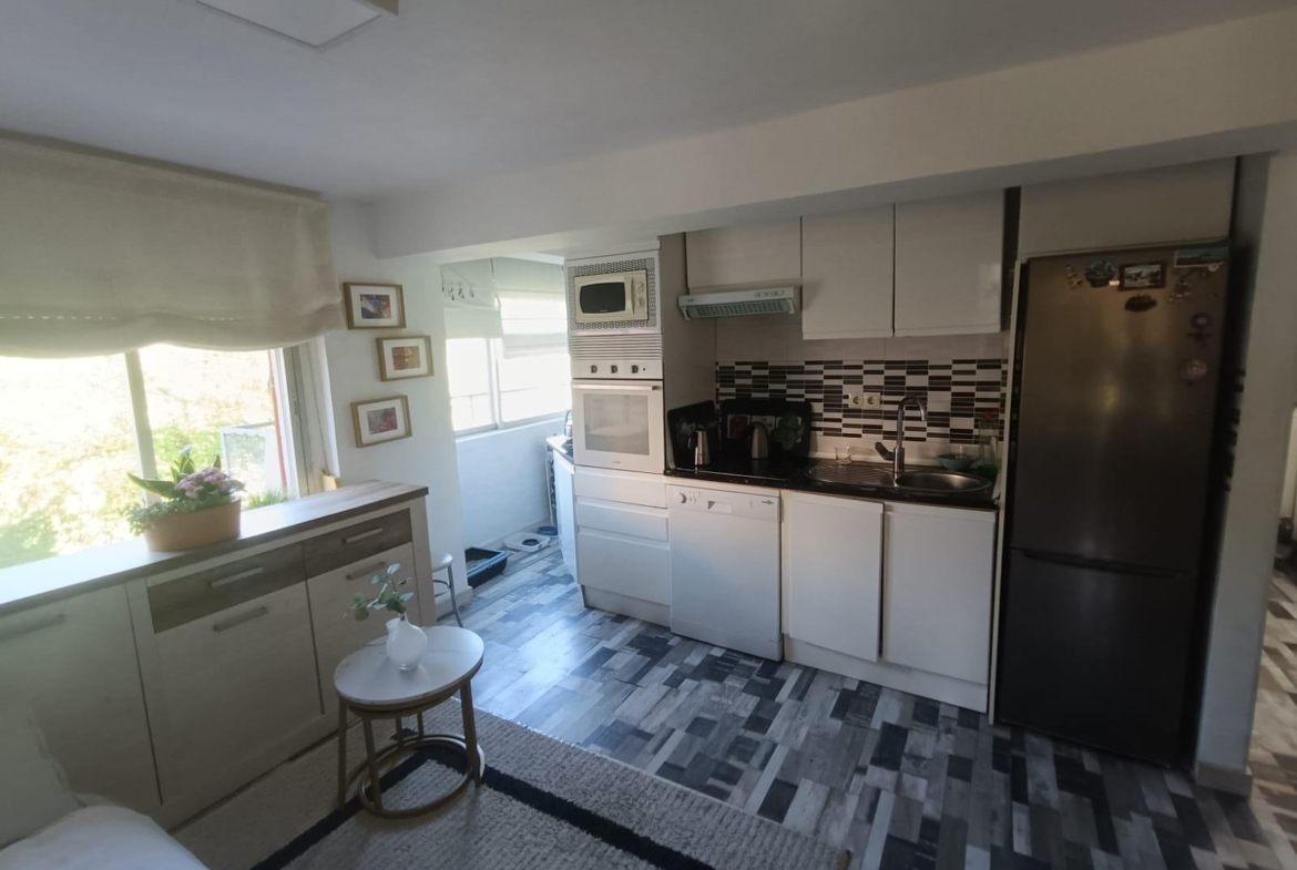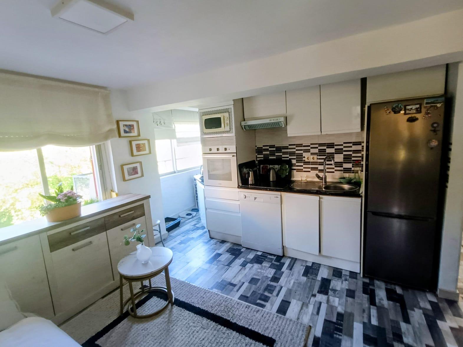 La cocina totalmente amueblada, dispone de un amplio tendedero cerrado en que da suficiente luz a toda la estancia.