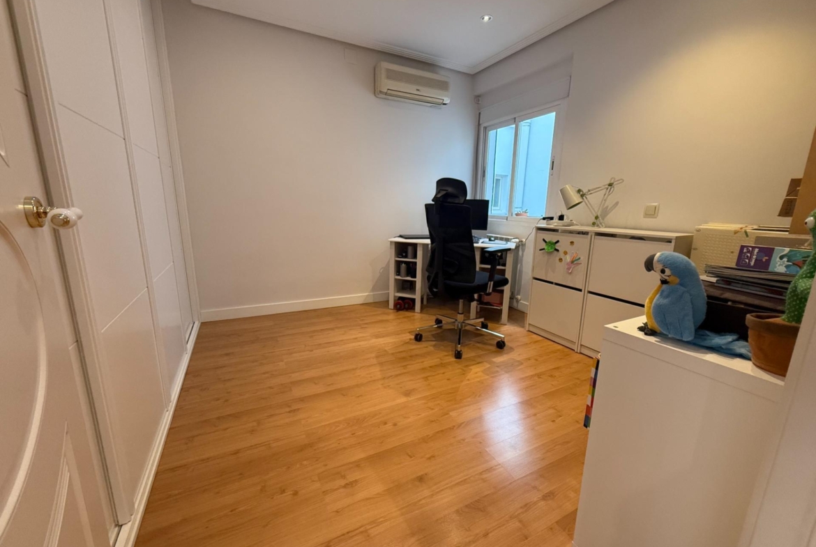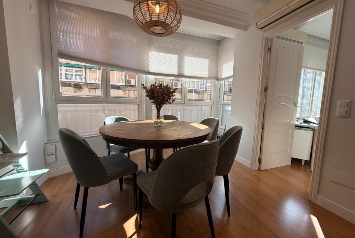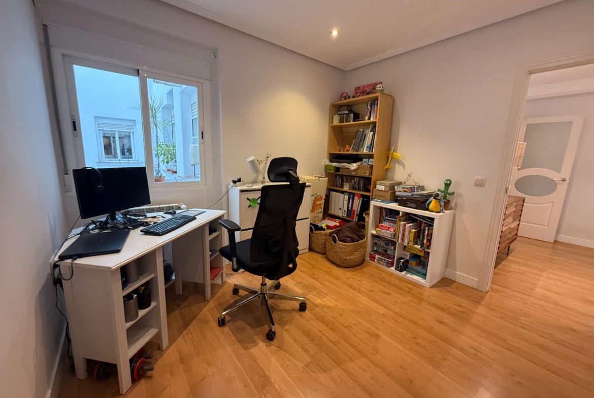 En cuanto a calidades, el piso dispone de calefacción central y agua caliente individual a través de una caldera , aire acondicionado tipo Split en todas las estancias, y suelos de tarima que aportan calidez y elegancia. La finca, por su parte, cuenta con portero, ascensor, acceso adaptado para personas con movilidad reducida y un portal representativo, impecablemente conservado, que transmite la solidez y categoría del edificio.