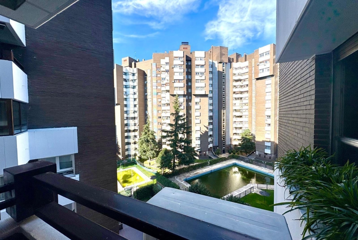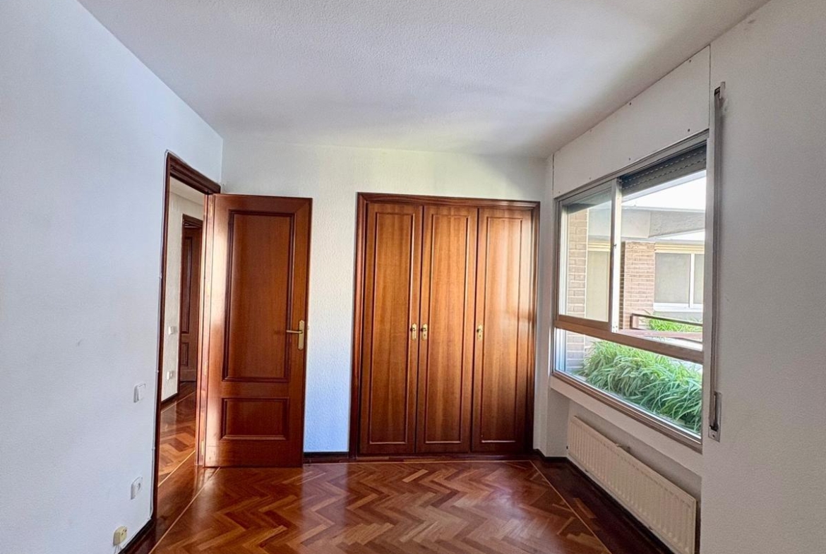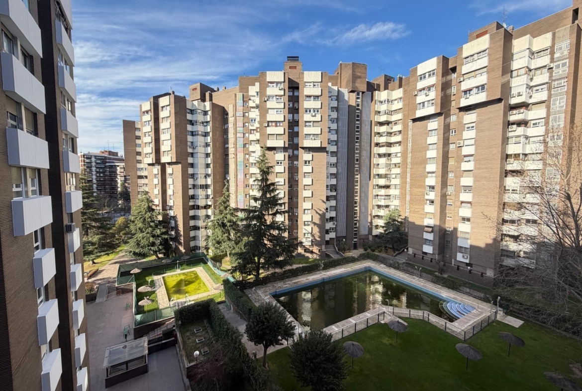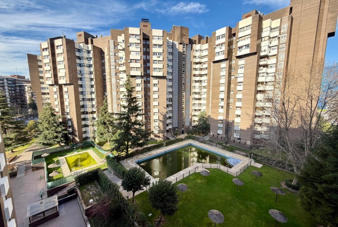 La urbanización incluye piscina, amplias zonas ajardinadas y portero físico 24 horas, garantizando tranquilidad y comodidad. Además, el piso incorpora plaza de garaje, un valor añadido en esta área de Madrid.