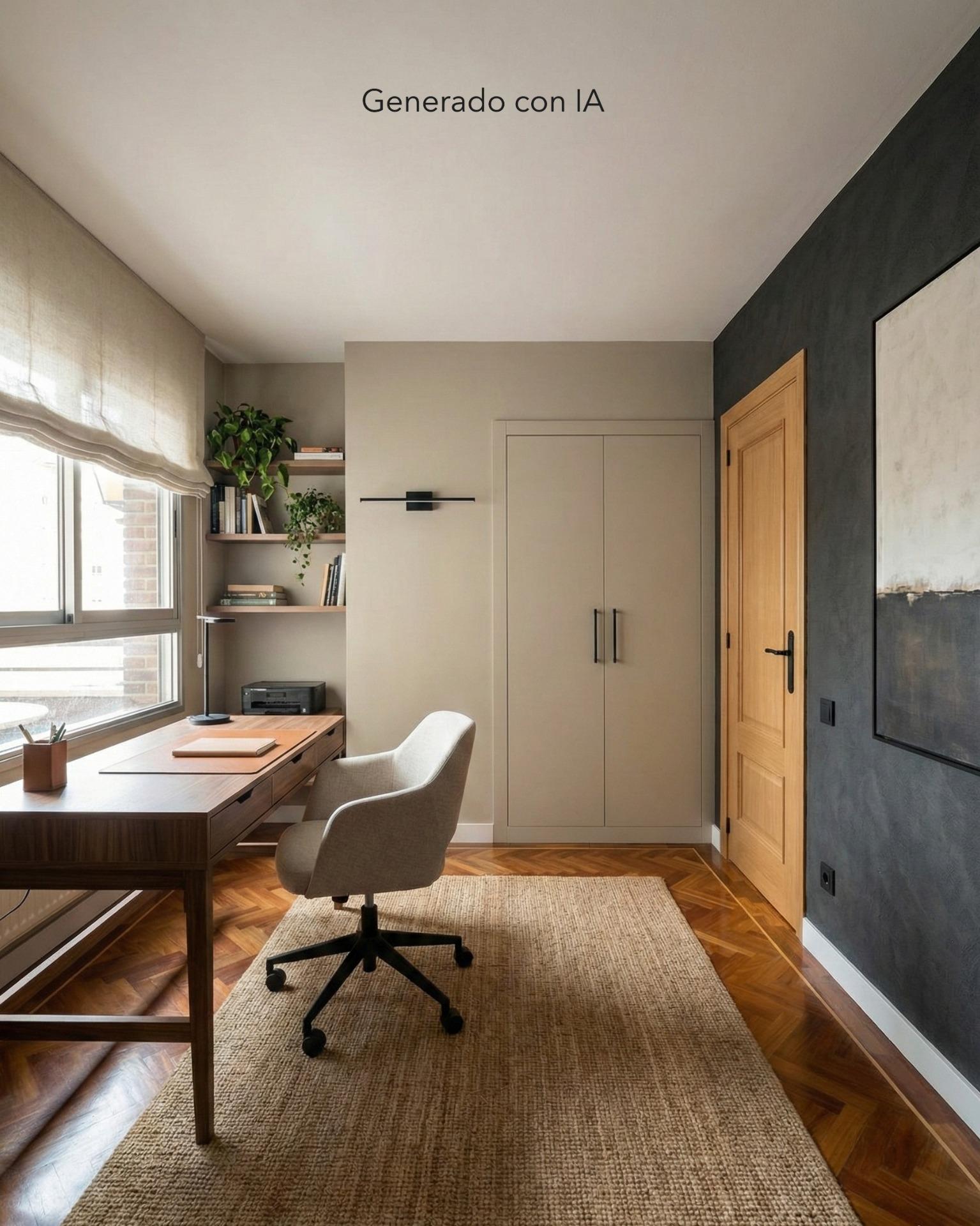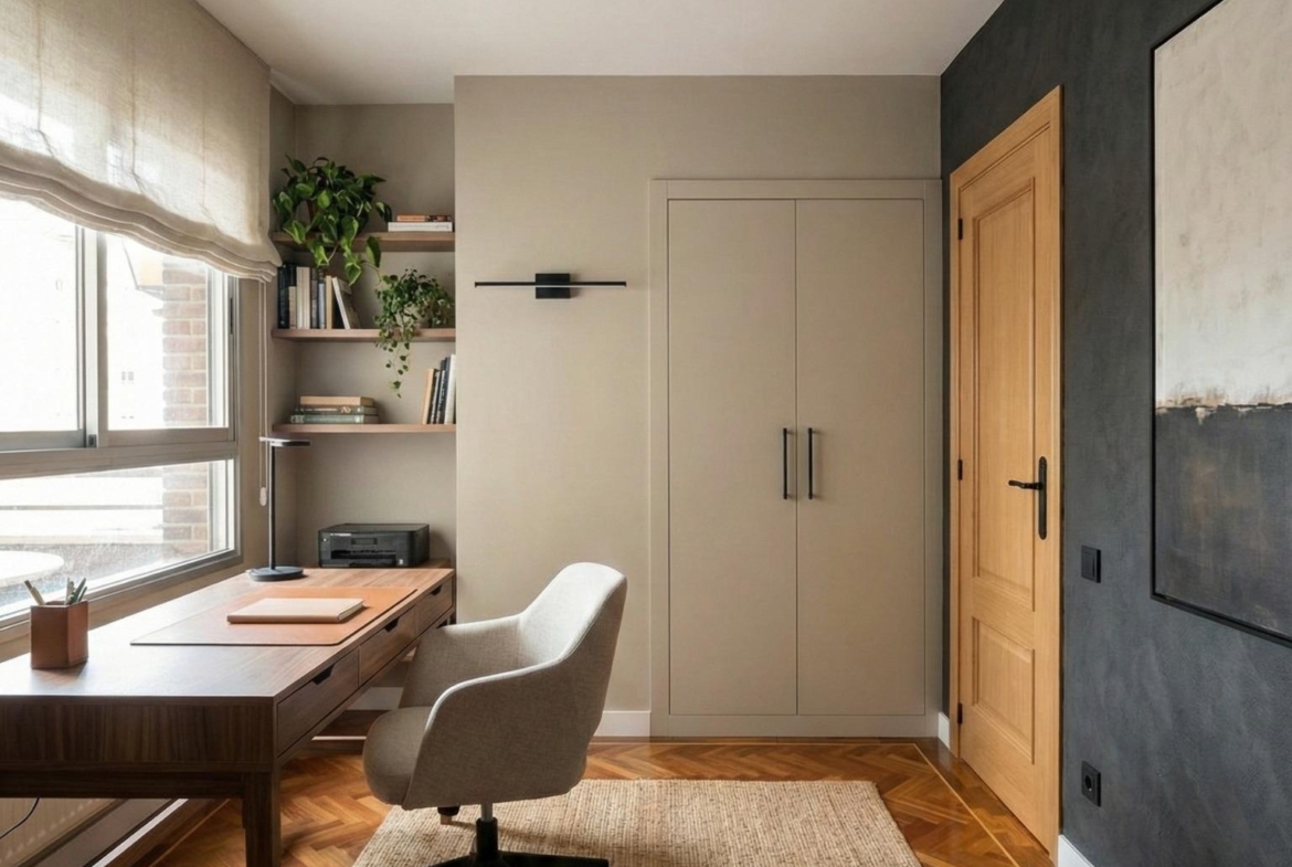 El piso dispone de un salón-comedor de generosas dimensiones, con salida a terraza con vistas a la piscina de la urbanización. La vivienda cuenta con dos habitaciones dobles, una de ellas con baño en suite, y dos habitaciones simples, que pueden destinarse tanto a dormitorios individuales como a despachos, además de un cuarto de baño completo. Todos los espacios son amplios, luminosos y confortables, con suelos de parquet que aportan calidez y sofisticación a la vivienda.