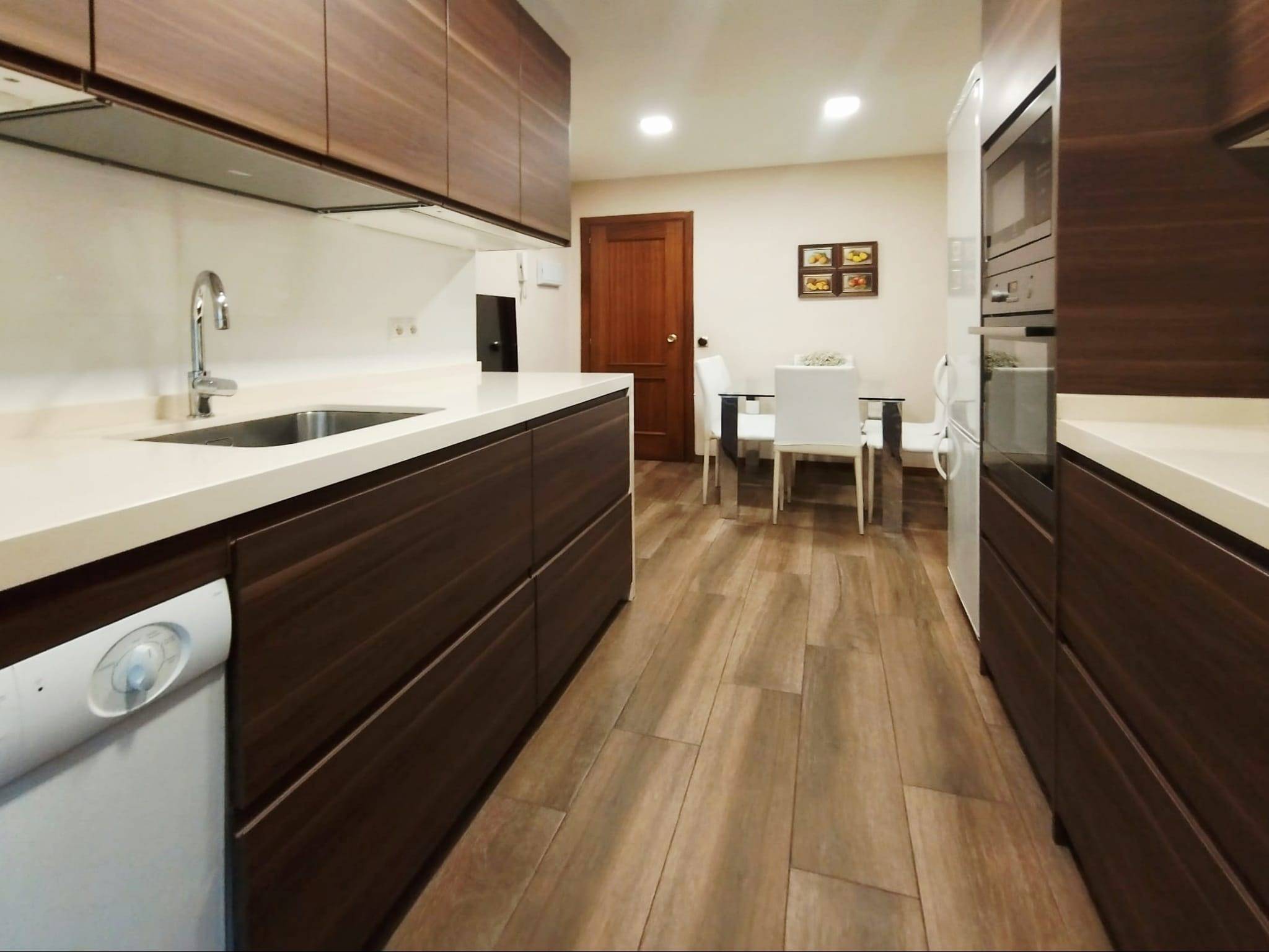 La cocina, independiente y de gran tamaño que incluye una zona de office, ofrece una excelente capacidad de almacenaje y dispone de zona de lavandería integrada.