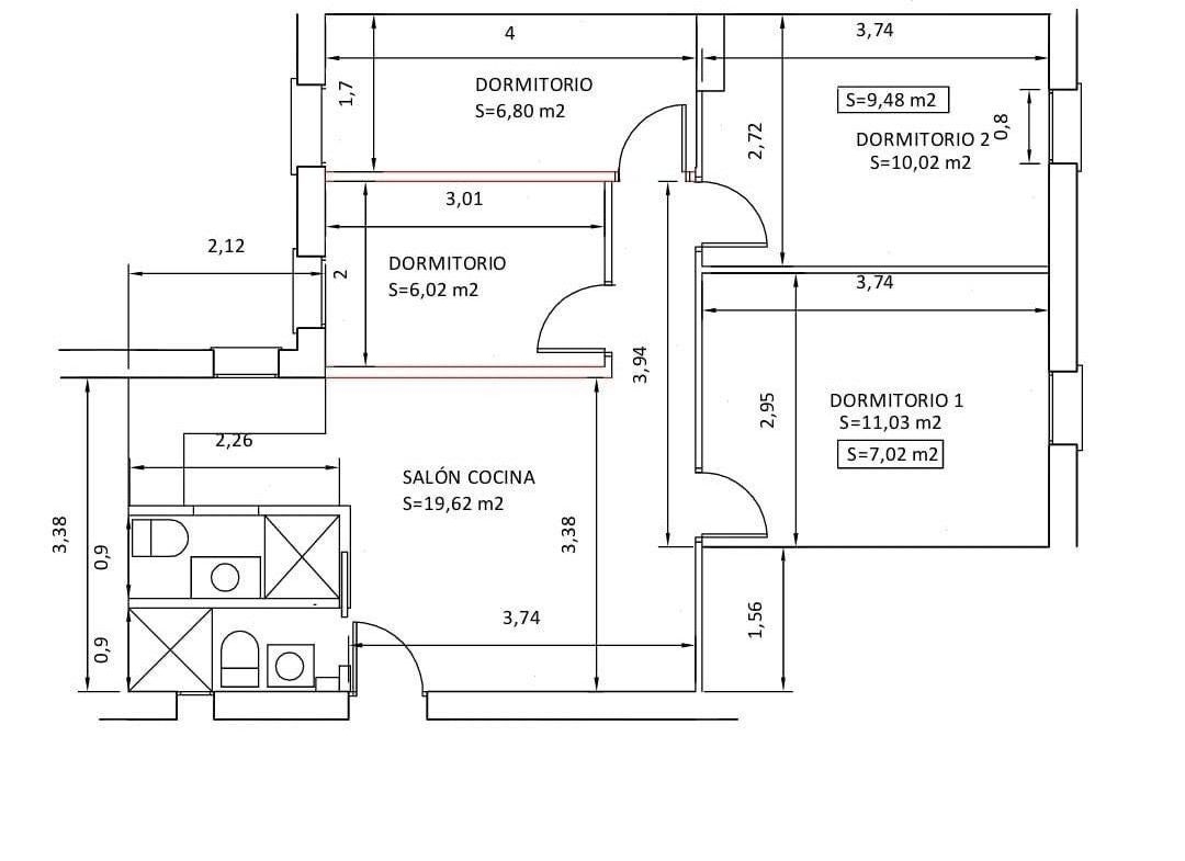 Este moderno piso de 71 metros cuadrados ha sido completamente reformado con un estilo actual y funcional. Cuenta con cuatro habitaciones y dos baños, ofreciendo un espacio versátil que se adapta tanto a una familia numerosa como a profesionales que necesitan un despacho en casa.