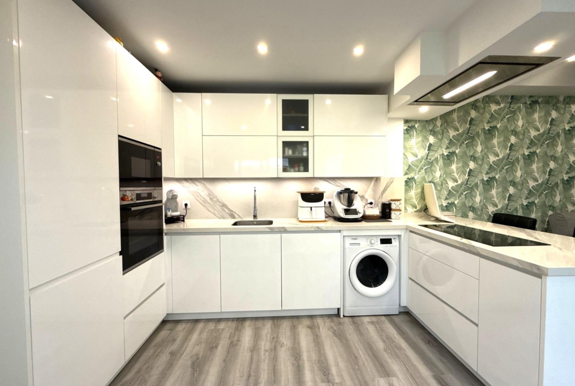 Inmobiliarias Encuentro vende en exclusiva este fantástico piso recién reformado, ubicado muy próximo al Corte Inglés de Nervión. La vivienda consta de 55 metros construidos además de un luminoso patio interior de uso privativo al que se accede desde el salón comedor. La cocina americana está perfectamente integrada en el mismo espacio y se vende equipada con electrodomésticos de primera gama, campana extractora en el techo y una isla tipo office para la placa vitrocerámica. El dormitorio doble cuenta con un amplio armario empotrado. Finalmente el cuarto de baño posee placa de ducha doble de piedra, mueble de lavabo en voladizo, bidet y espejo con luz integrada. La amplitud del baño permite incluso añadir un armario para almacenaje extra.