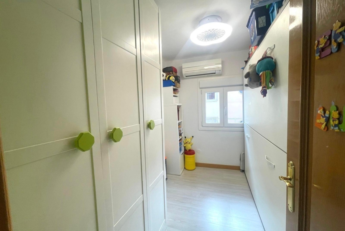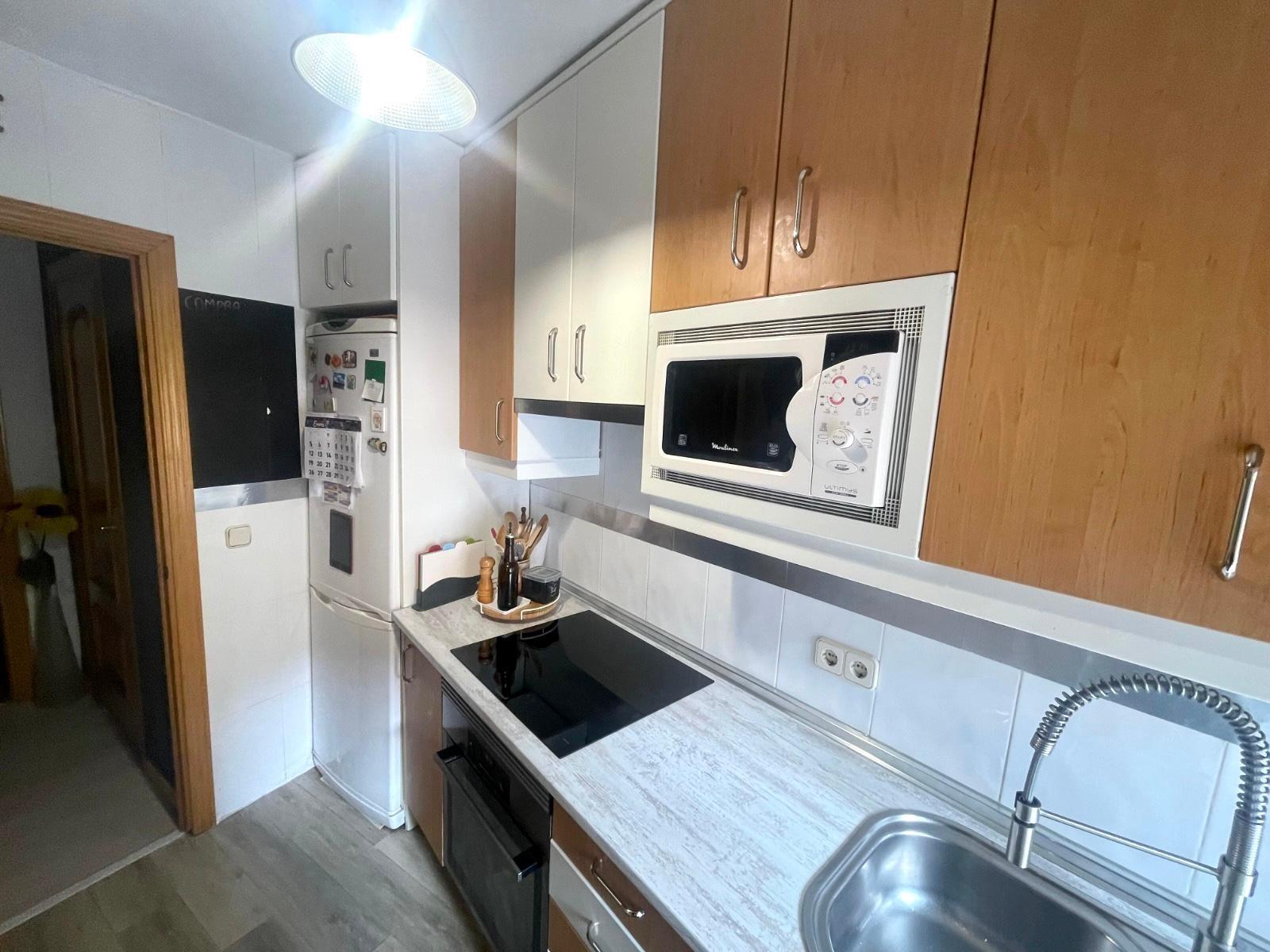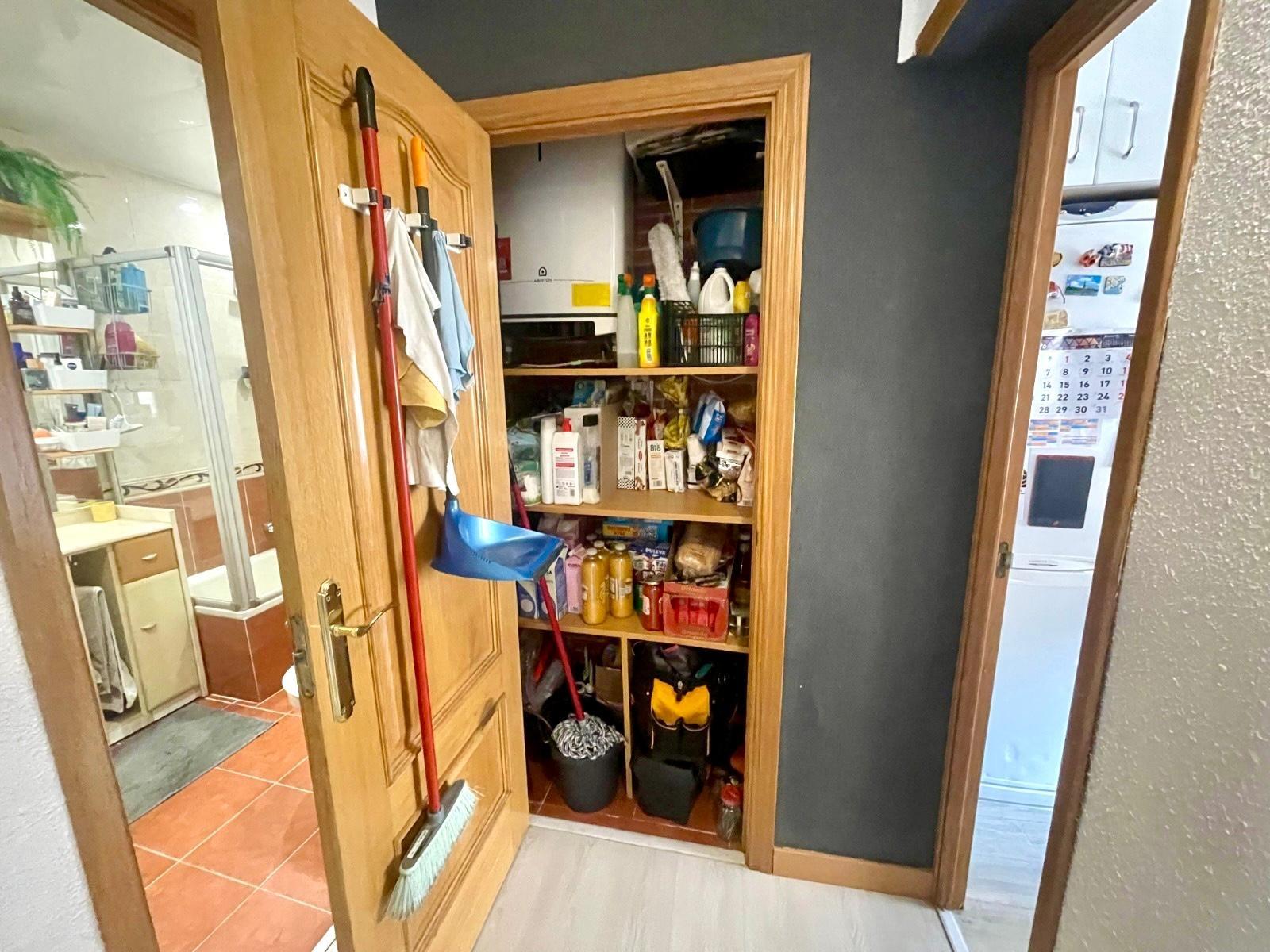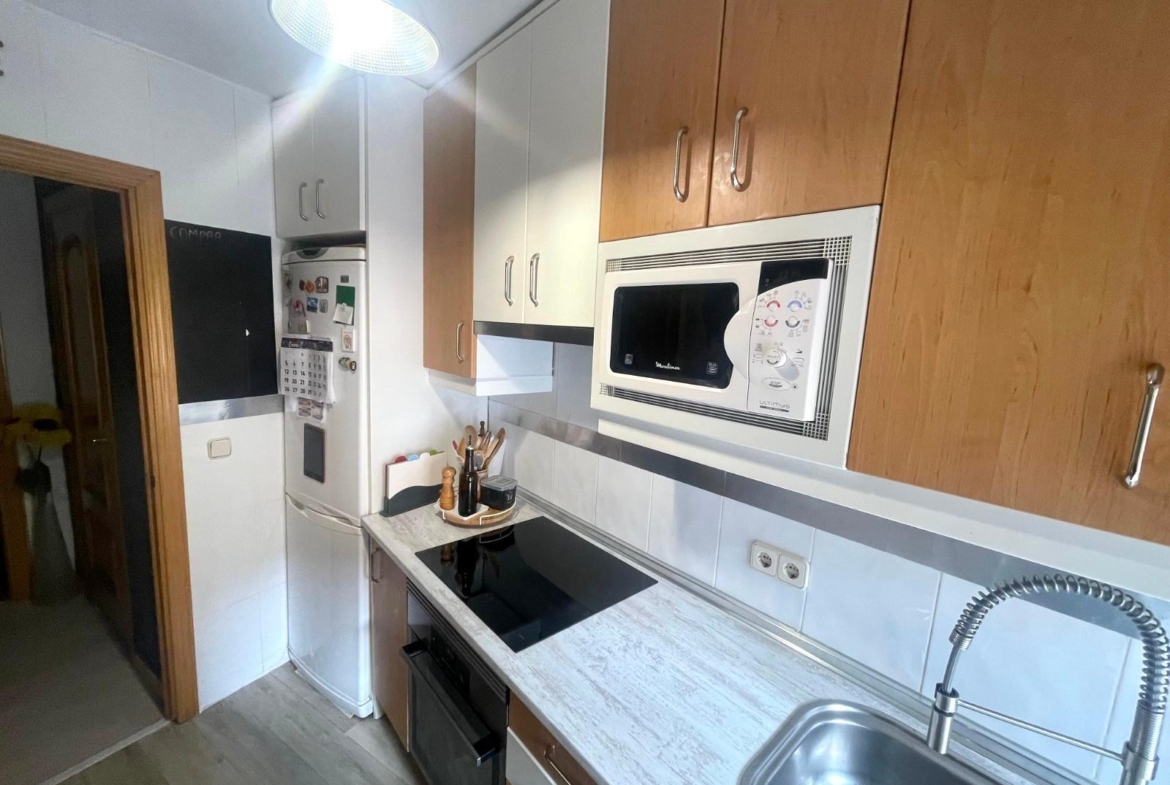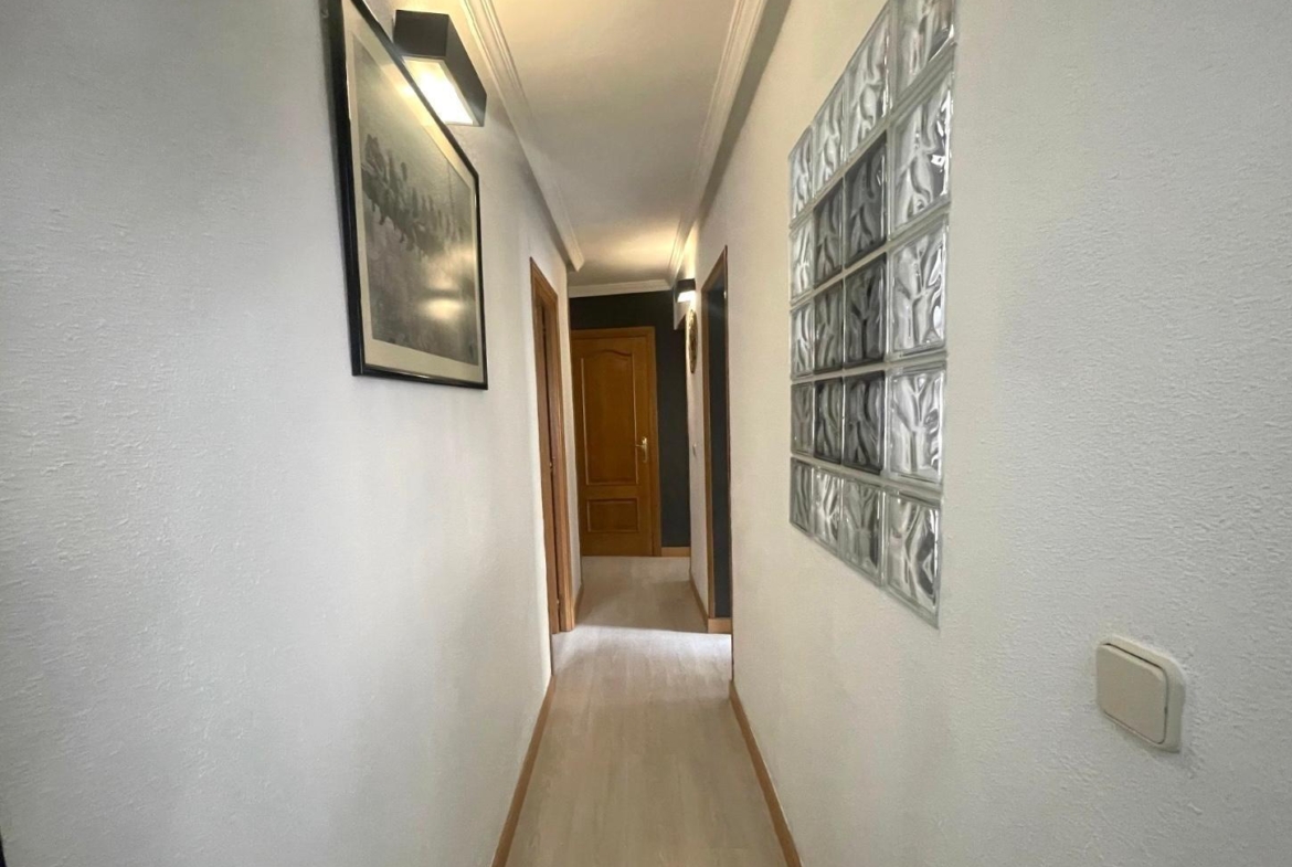 Actualmente se distribuye en DOS habitaciones, originalmente TRES, la principal con un espacioso armario empotrado, salón-comedor, cocina completamente equipada, cuarto de baño completo con con bañera y una despensa. Posee un trastero y terraza comunitaria.