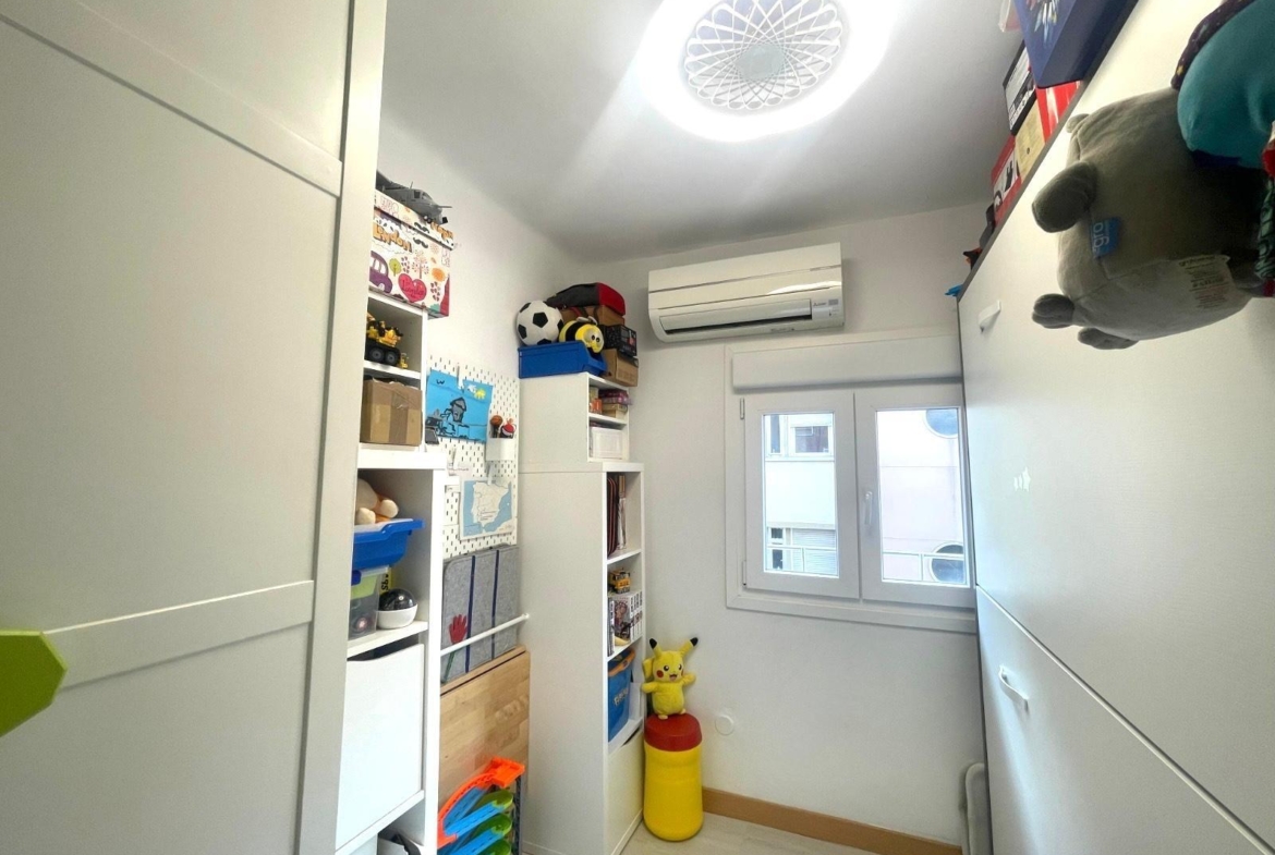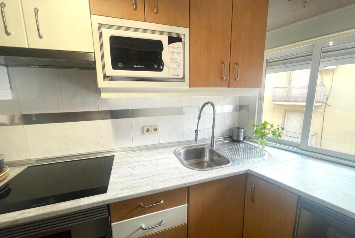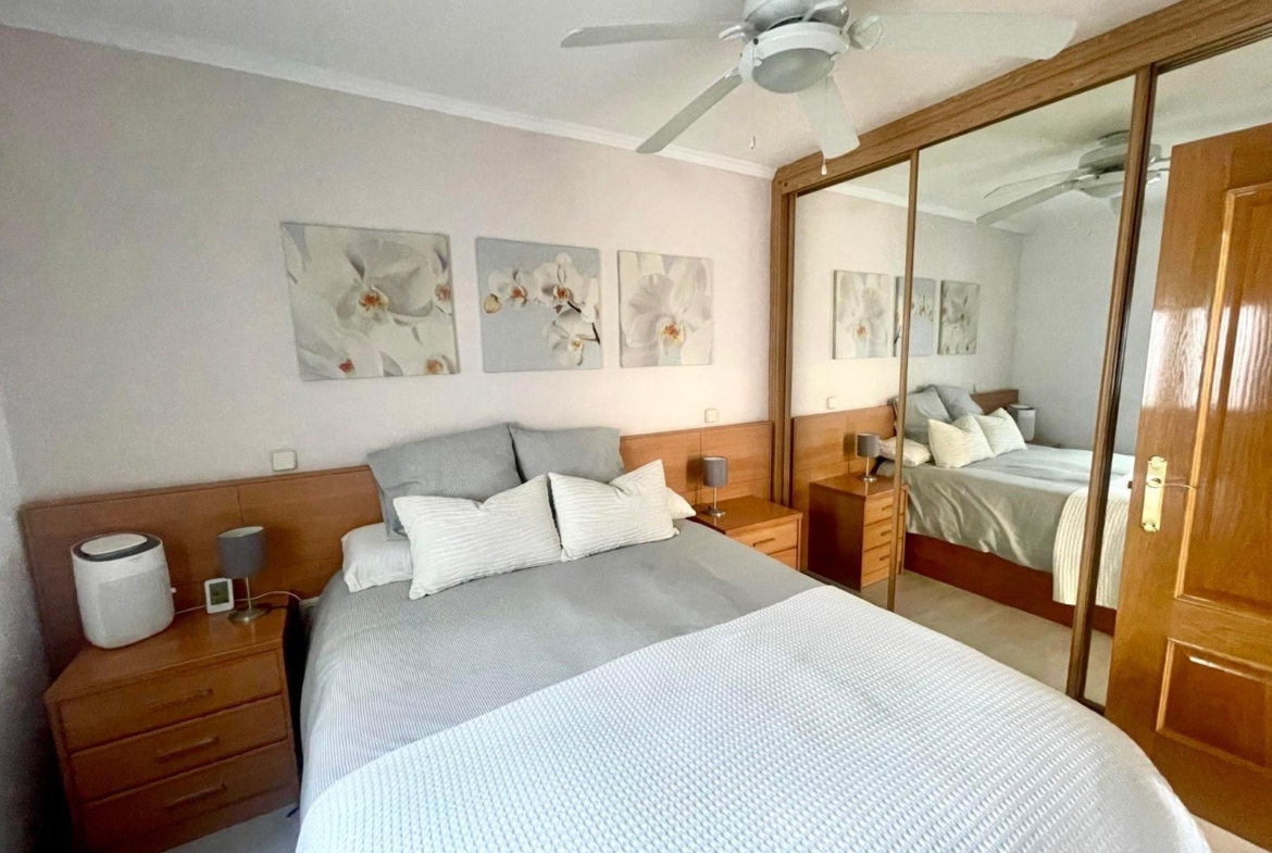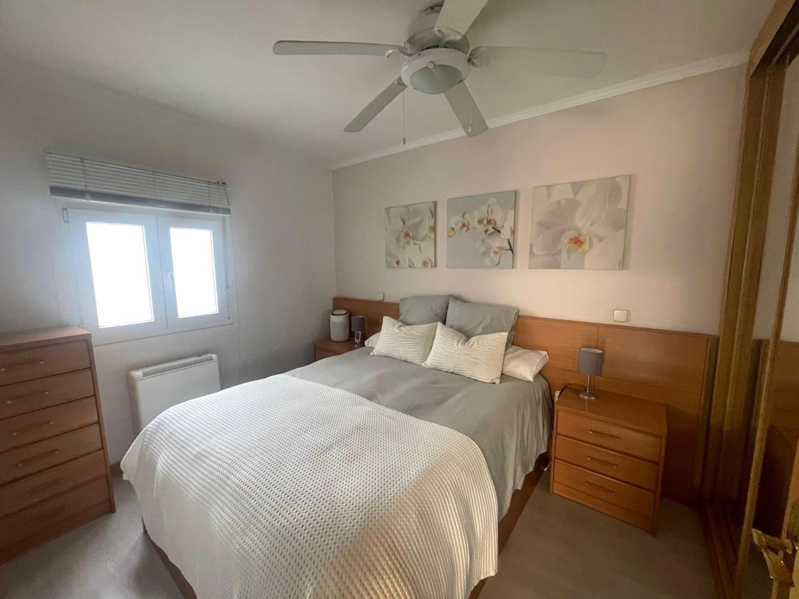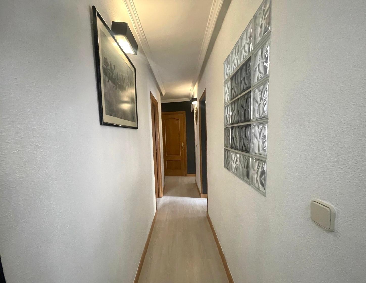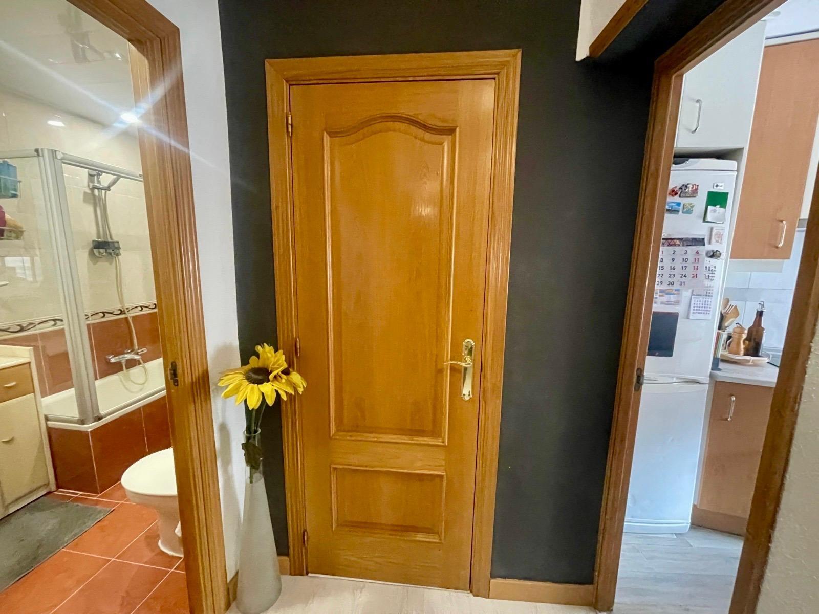 Actualmente se distribuye en DOS habitaciones, originalmente TRES, la principal con un espacioso armario empotrado, salón-comedor, cocina completamente equipada, cuarto de baño completo con con bañera y una despensa. Posee un trastero y terraza comunitaria.