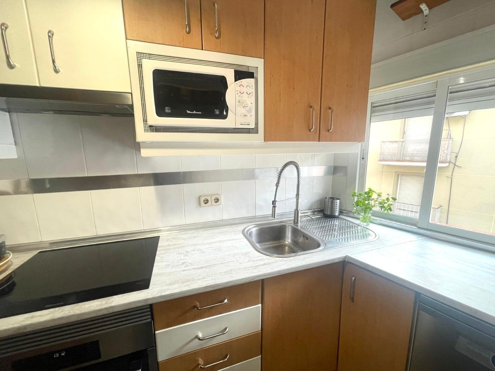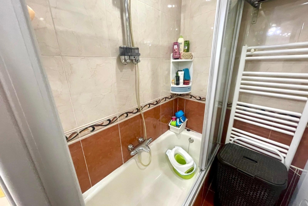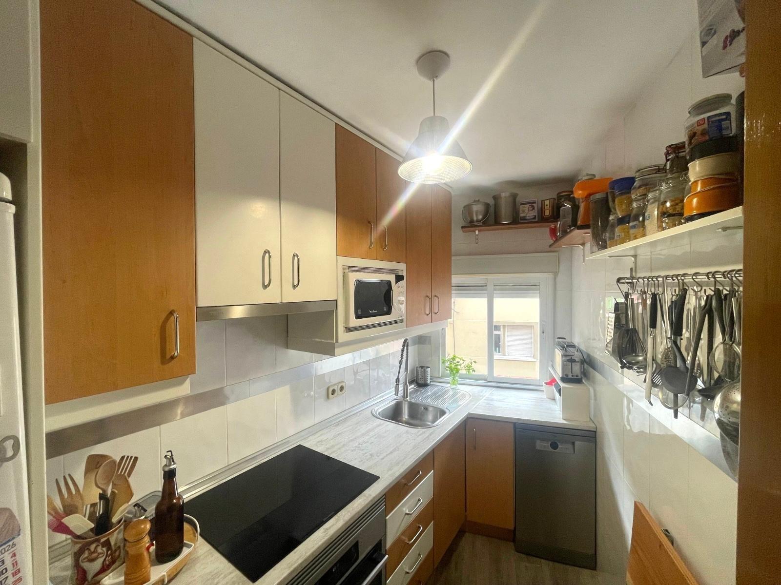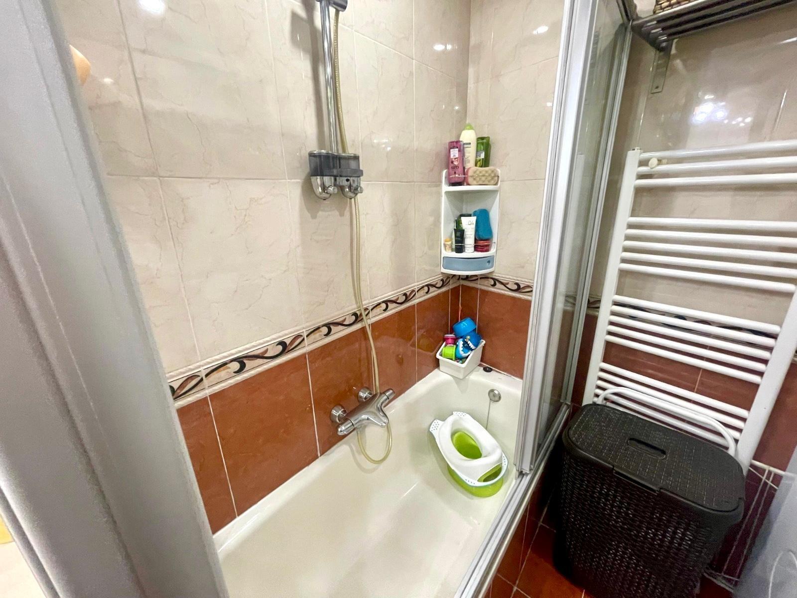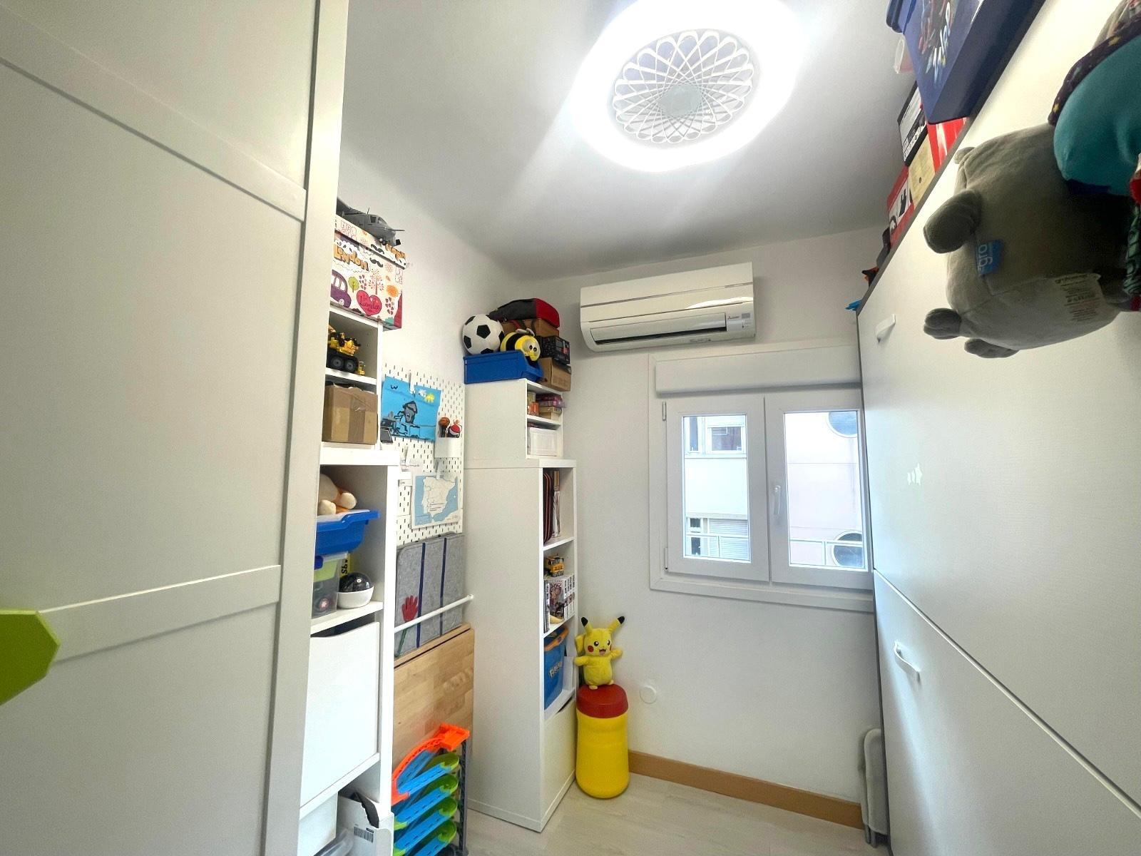 Actualmente se distribuye en DOS habitaciones, originalmente TRES, la principal con un espacioso armario empotrado, salón-comedor, cocina completamente equipada, cuarto de baño completo con con bañera y una despensa. Posee un trastero y terraza comunitaria.