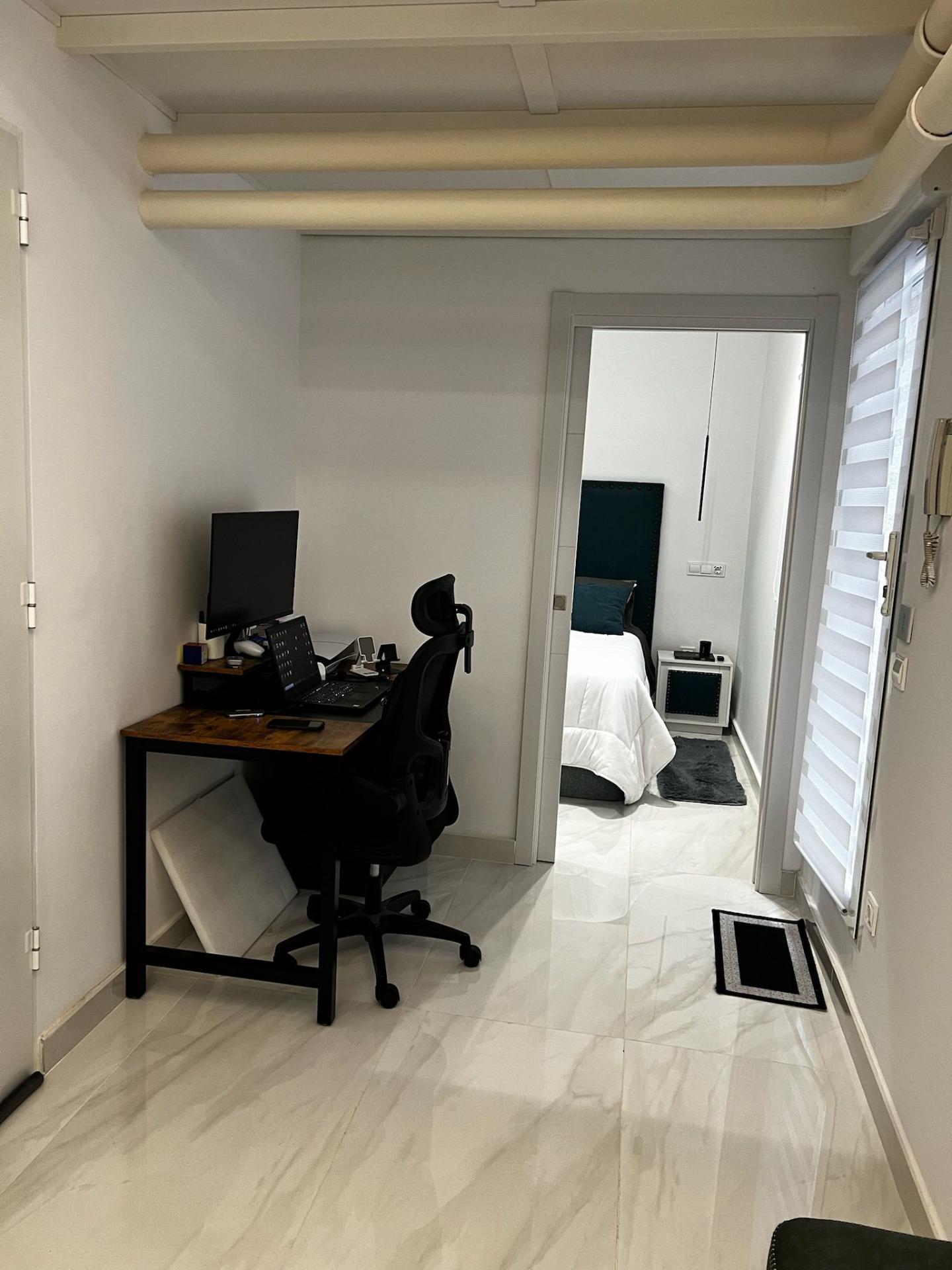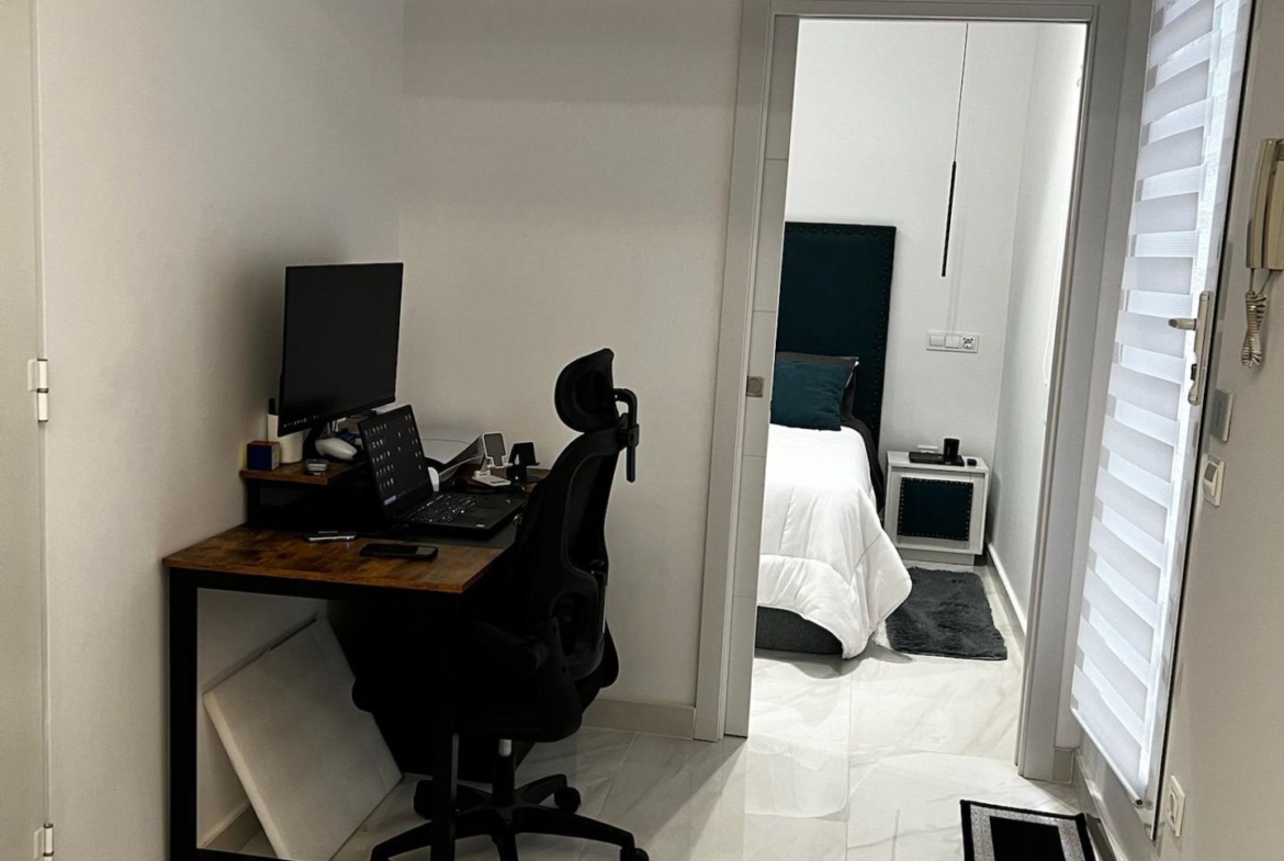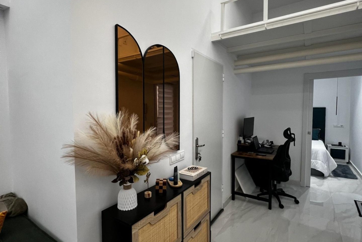 La amplitud de esta vivienda destaca por su impecable distribución, funcionalidad y confort. Al ingresar, te sorprenderá un amplio salón con cocina integrada, diseñada para crear un ambiente armonioso y acogedor, perfecto para quienes valoran la calidad de vida en un espacio eficiente y bien planificado. Junto al salón, se encuentra una pequeña zona de trabajo o estudio, ideal para tareas diarias o teletrabajo. Además, cuenta con un altillo o plataforma donde se ubica una cama, optimizando el espacio y ofreciendo una solución versátil para el descanso. En todo el techo del salón hay luces empotradas con un hermoso diseño que ofrece una iluminación maravillosa, además de estar todo el espacio climatizado por aire acondicionado tipo Split. Encontrarás una habitación climatizada y con espacio para armario grande, un baño increíble y de alta calidad, con ducha amplia y totalmente iluminado. Destacar que el piso cuenta con patio privativo y con mucho espacio, ideal para reuniones y pasar el rato al aire libre.