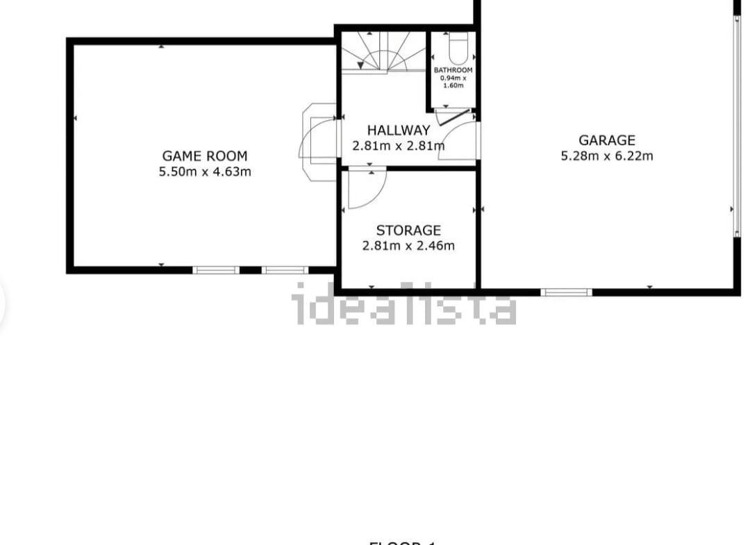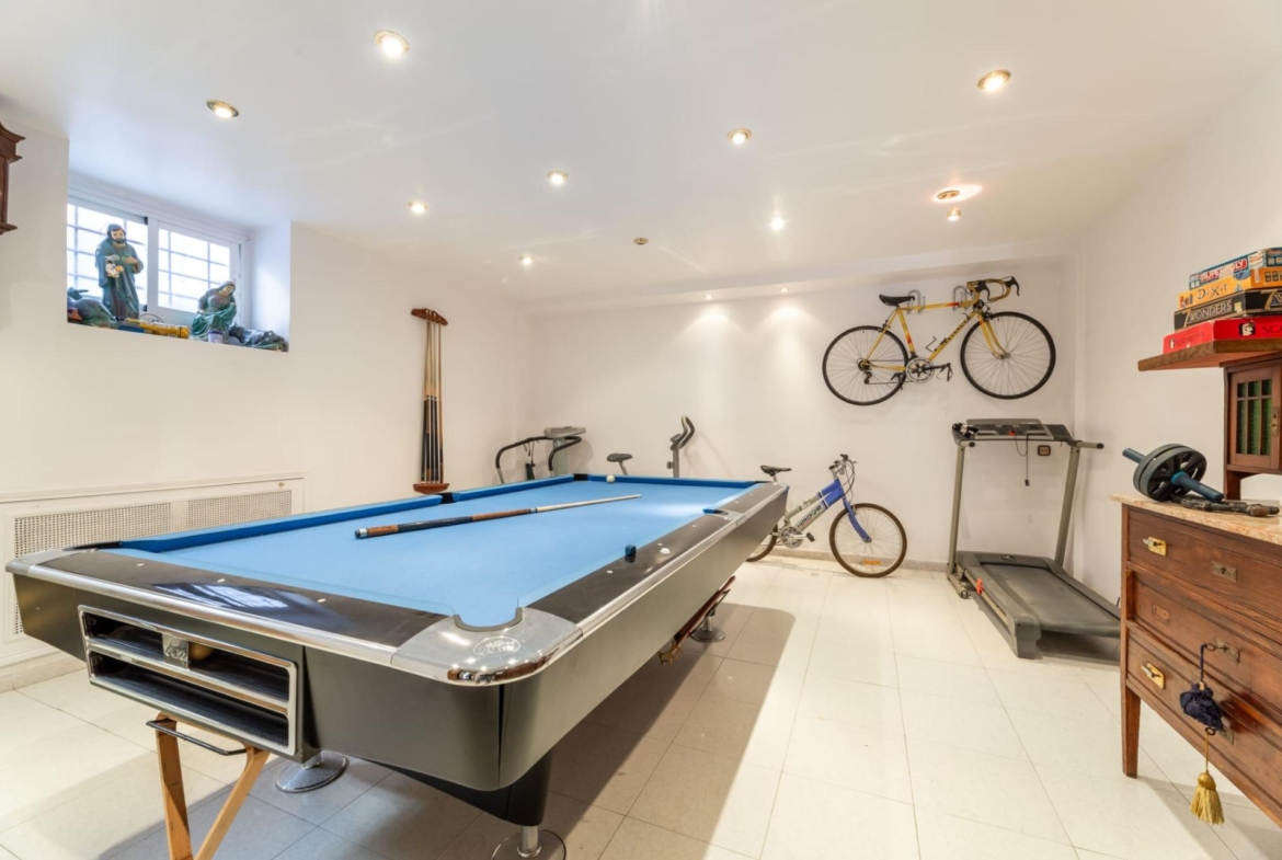 acceso), sala amplia actualmente destinada a ocio con mesa de billar, aseo y