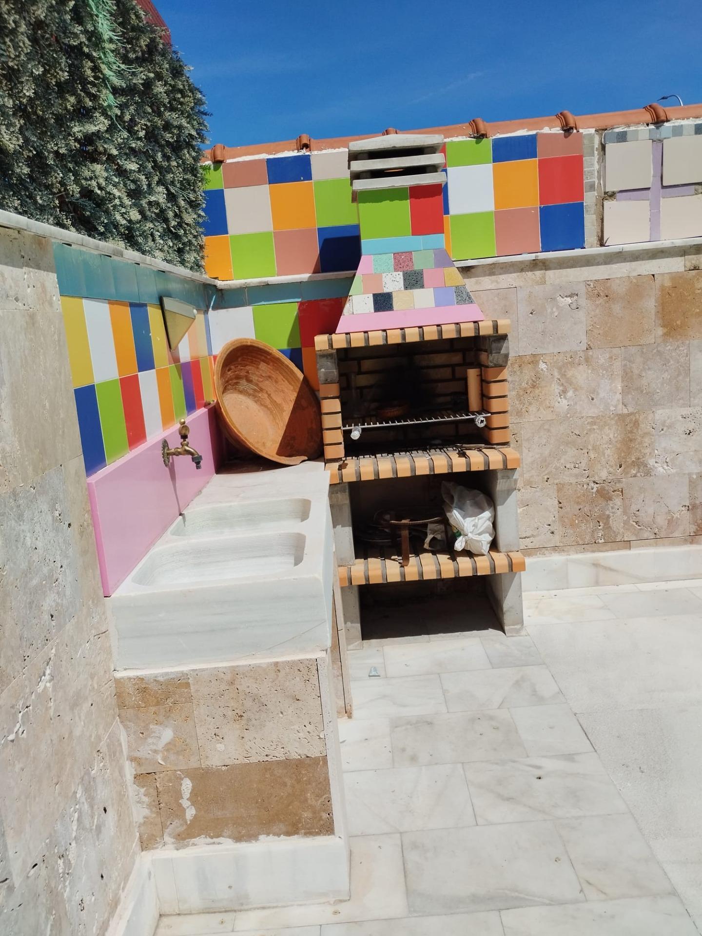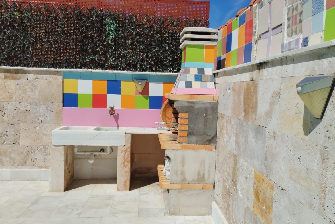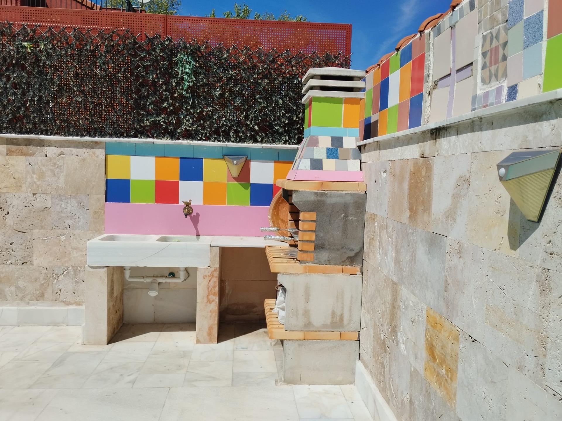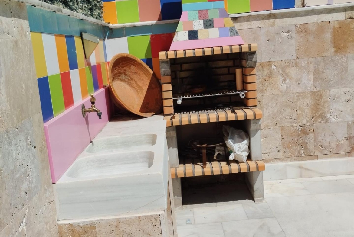 interior del jardín está situada una amplia piscina con zona de barbacoa y acceso a