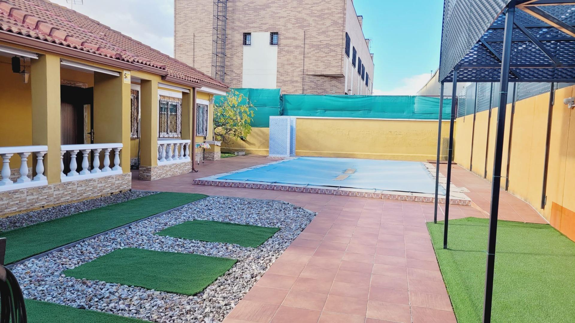 También tenemos un coqueto y muy funcional porche en la entrada ideal para relajarse y disfrutar del jardín de 447 metros que rodea la casa que incluye una PISCINA propia y privada dentro de la villa.